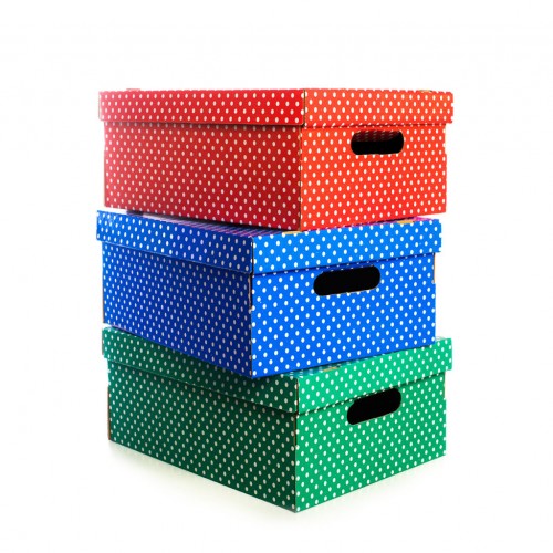 CAJA CARTON ESC.LUNARES M&D ROJO 40X30X15